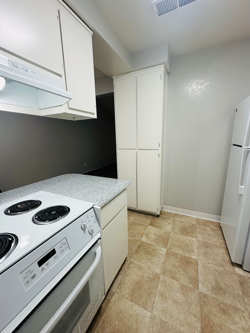 This cozy 2 bedroom apartment is a single story Villa. It offers the complete package of amenities including all modern electric appliances, a large patio, outside storage closets, central air and heat and plank flooring! Both bedrooms have wall to wall closets. There's even USB charging stations! The apartment has tall vaulted ceilings and feels like home right as you walk in the front door!