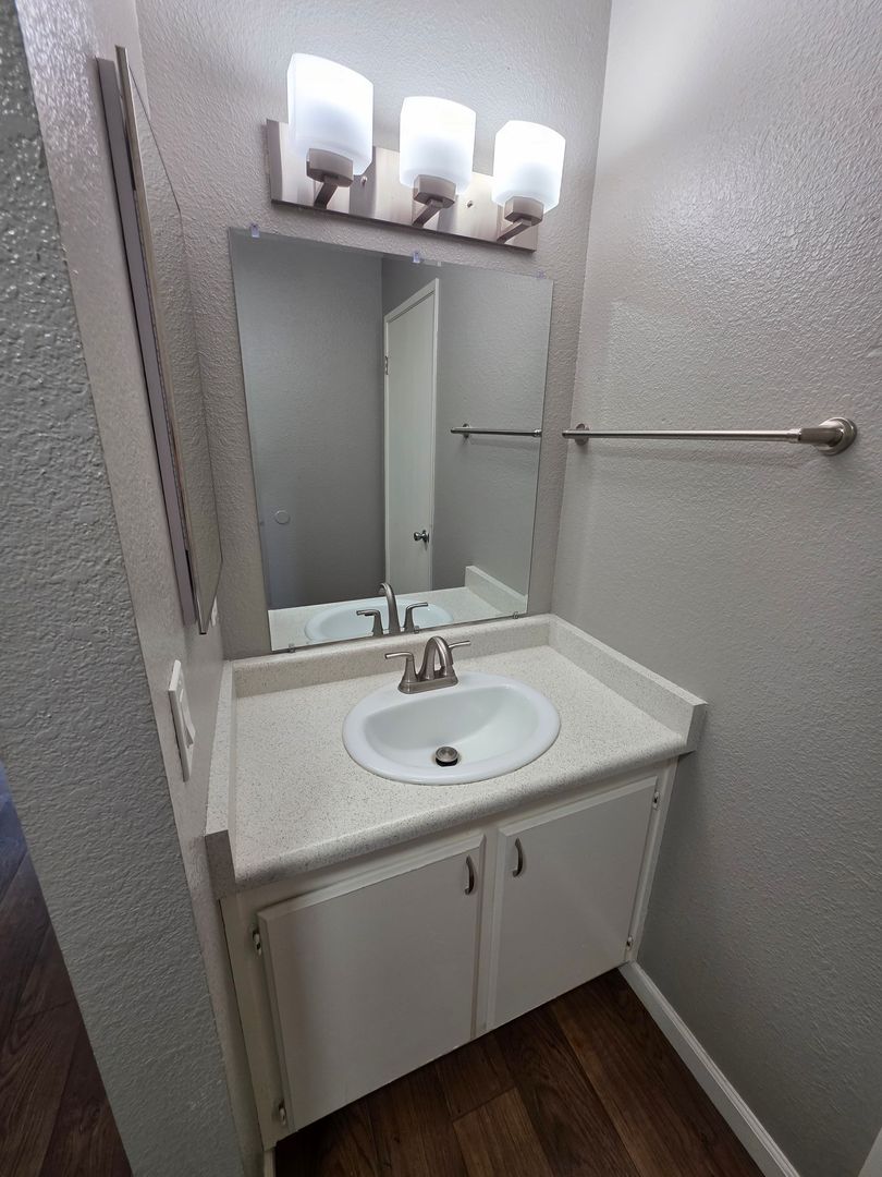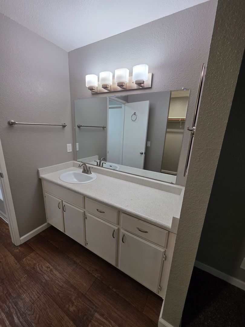 This 2 bed, 1.25 bath apartment at The Meridian offers all the essentials: full size Washer/Dryer provided, private patios front and back, generous storage and garage parking available for rent.