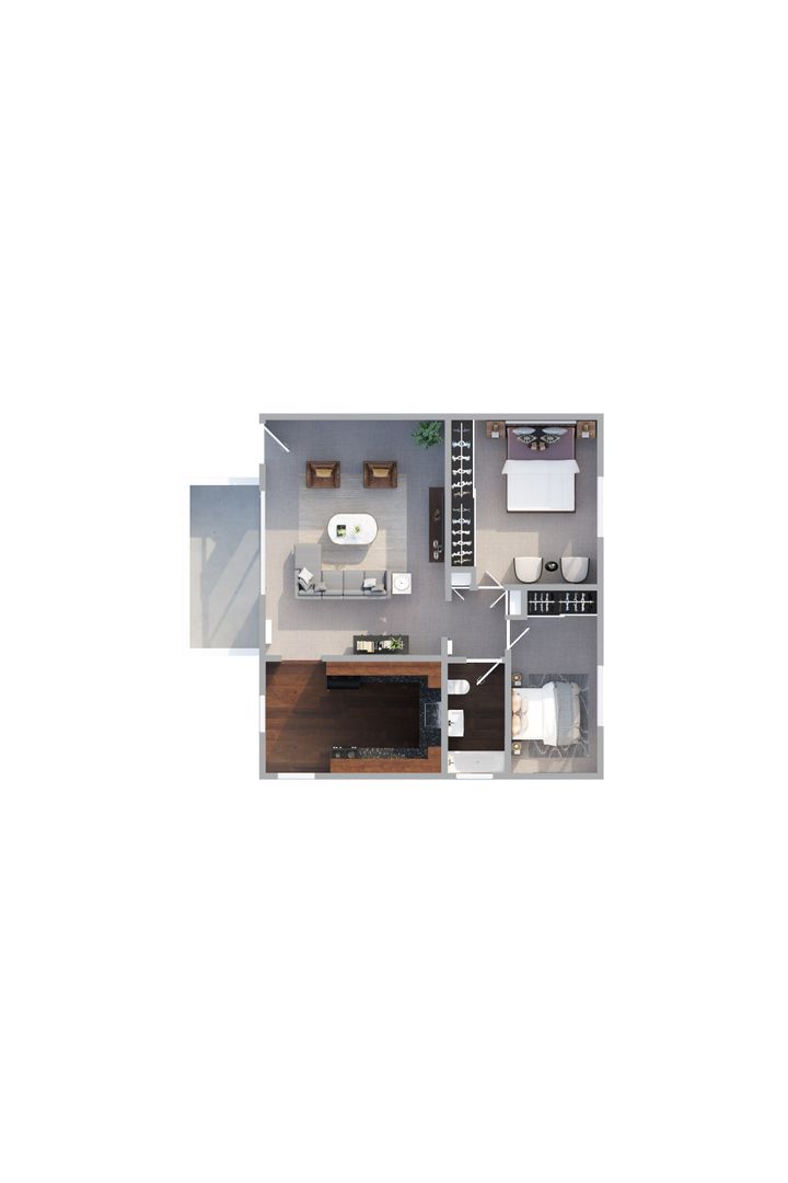 » Newly Remodeled 2-Bedroom, 1-Bathroom layout (802 sq. ft.)